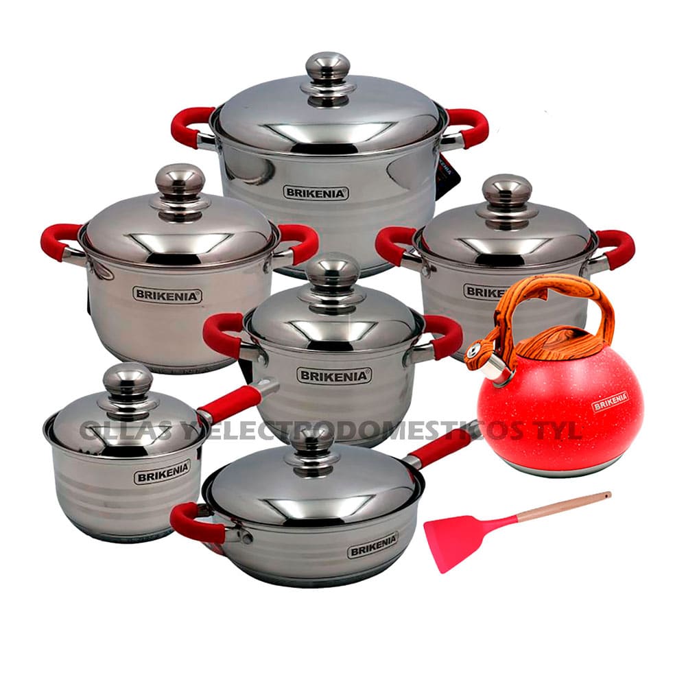 Juego de Ollas Brikenia Acero Quirúrgico 13 Pcs Tetera Roca Volcánica BE-S9168