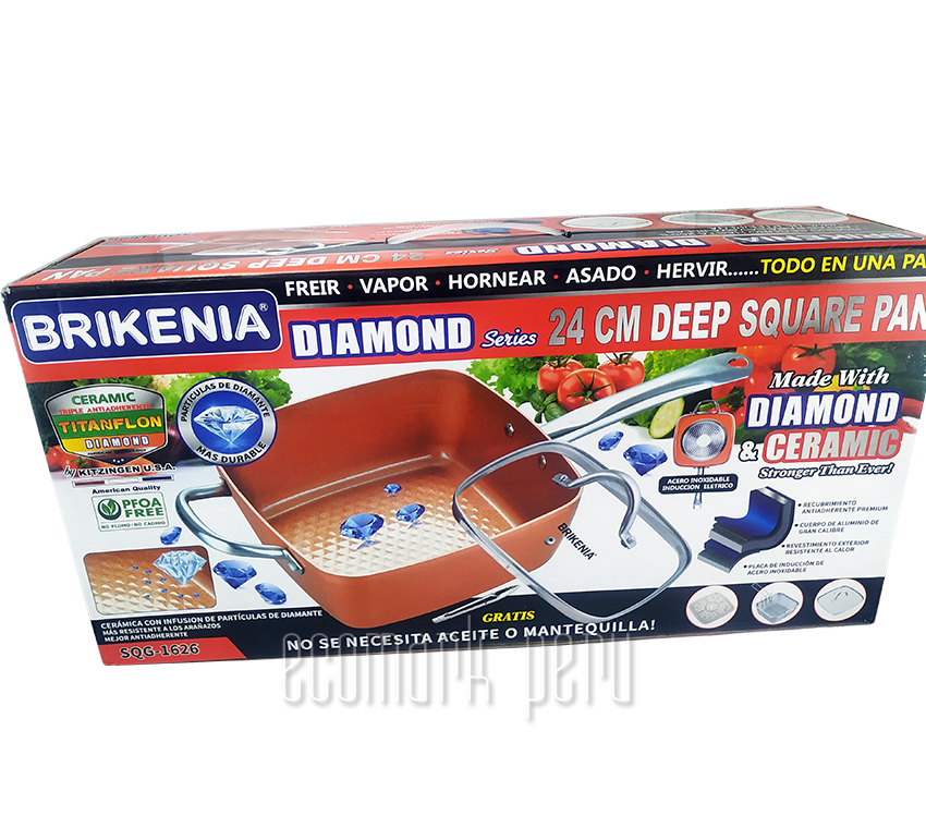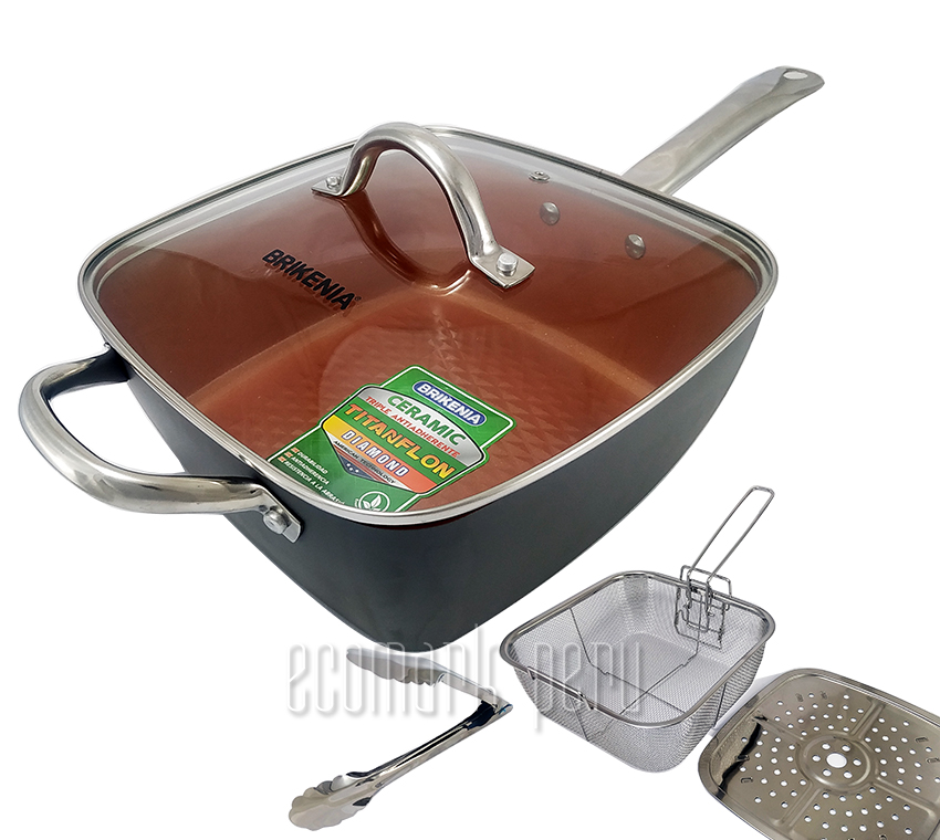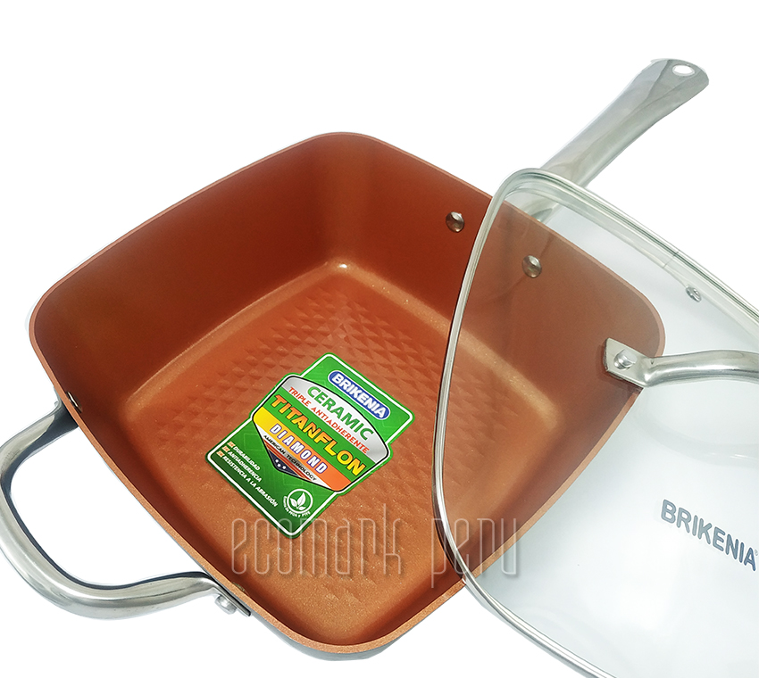 Sartén cacerola copper Brikenia, cocina al vapor y hornea con un solo utensilio de cocina, la cacerola cuadrada hecha de cerámica con infusión de partículas de diamante mas resistente a los arañazos y mejor anti adherente.